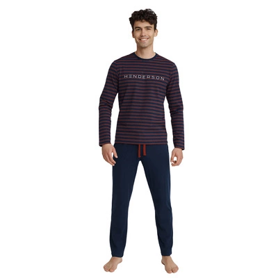 Henderson Herren Pyjama Set Umbra – Bequeme Baumwoll Schlafanzug mit Langarmshirt und Lange Hose, Komfort und Stil, Elegante Streifen, Dunkle Umbra, Ideal für Herbst/Winter, Rundhalsausschnitt, Neu