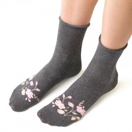 Socken Art.099 Grau mit Blumenmuster