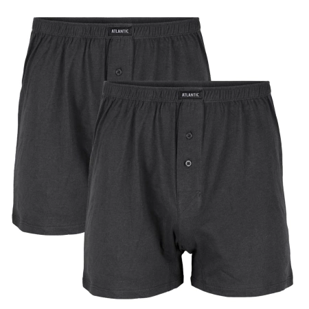 Atlantic Herren Boxershorts 2er Pack – Lockerer Schnitt, 100% Baumwolle, Bequem und Atmungsaktiv, Schwarz & Dunkelgrau Melange, Weiche Taille, Frühling/Sommer Kollektion 2025