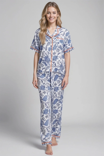 Damen Schlafanzug Atrani Blau Gemustert