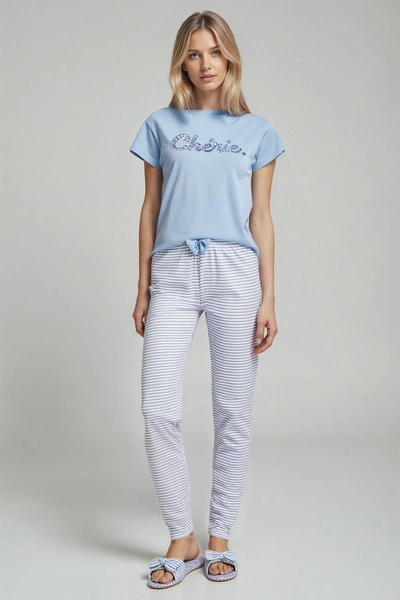 Damen Schlafanzug Juliana Blau Gestreift