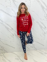 Damen Schlafanzug Natalie Rot mit Schneeflockenmuster