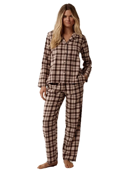 Damen Schlafanzug Serie nlp-505 Kariert Ecru-Braun-Beige