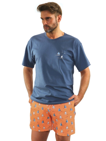 Kurzarm-Schlafanzug Herren Serie Orange-Blau