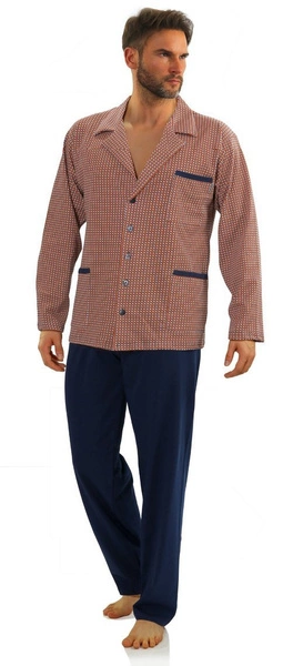 Sesto Senso Herren Baumwoll Pyjama Set – Bequeme Nachtwäsche mit Langarmshirt, Rundhalsausschnitt, Modische Karierte Hose, Atmungsaktiv, Ideal für das ganze Jahr, Blau Rot Beige