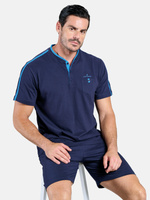 Sesto Senso Herren Pyjama Set – Kurze Ärmel, Kurze Hose, 100% Baumwolle, Elegantes Design mit Karomuster, Bequeme Passform, Atmungsaktiv, Ideal für Sommernächte, Farbe: Blau, Modell: 2379/27