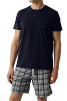 Sesto Senso Herren Pyjama Set – Kurzarm, Baumwolle, Bequeme Nachtwäsche mit Madras-Karo, Atmungsaktiv, Granatblau, Ideal für Sommernächte, EU-Qualität, Praktische Taschen, Für Männer