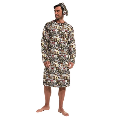Sesto Senso Herren Nachtshirt Lang mit Schlafmütze – Bequeme Nachtwäsche aus 100% Baumwolle, Atmungsaktiv, Mehrfarbig, Rundhals, Ideal für das ganze Jahr