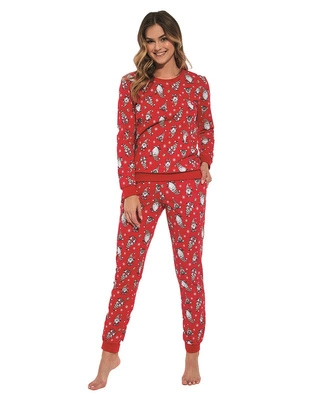 Sesto Senso Damen Schlafanzug – Weihnachtliche Pyjama aus 100% Baumwolle, Langarmshirt mit Rundhalsausschnitt, Lange Hosen mit Print, Komfortable Passform, Farbe Rot, Für Frauen