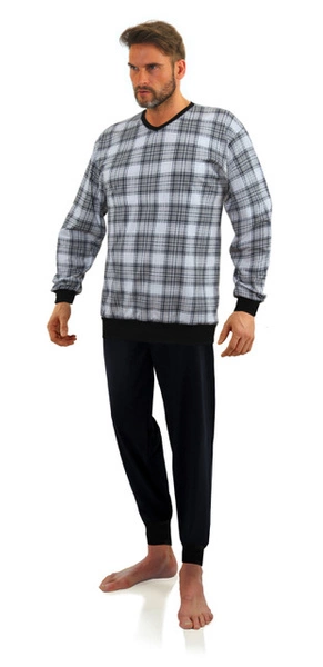 Sesto Senso Herren Baumwoll Pyjama Set – Bequeme Langarm Schlafanzug mit Bündchen, V-Ausschnitt, Atmungsaktiv, Ideal für Herbst/Winter, Mehrfarbig, Hergestellt in Polen