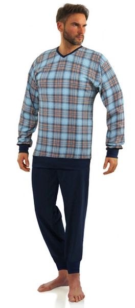 Sesto Senso Herren Baumwoll Pyjama Set – Lange Ärmel & Hose mit Bündchen, V-Ausschnitt, Atmungsaktiv, Ideal für Herbst/Winter, Hausanzug, Hergestellt in Polen, Mehrfarbig