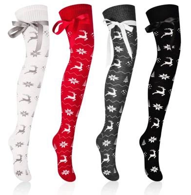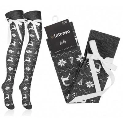 Zakolanówki damskie świąteczne we wzory z kokardą Art. 440